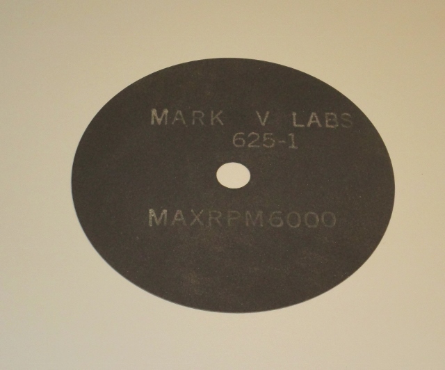 LABORATORY GRADE RUBBER BONDED IN ALUMINUM OXIDE CUT-OFF WHEELS FOR SECTIONING HARD STEEL & ALLOYS.  REPLACEMENT FOR MARK V LAB SERIES 600 SECTIONING MACHINES. USED ON HARD STEELS & ALLOYS