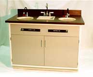 Manufactured by Mark V Lab the METPOL22 8" Dual Wheel Grinder/Polisher Table is built from a Two Door Steel Cabinet 48"Wx30"Dx36"H and Laminated Counter-top with Backsplash. Assembled with Heavy Duty Components such as Two 2 Speed 1/3 hp. Air-cooled GE Motors, Stainless Steel Arbor Shafts with no-maintanance SKF Ball Bearing Assemblys, Kydex acid resistant Bowls and Drain System, Flexable Coolant Hoses with Ball Valves and Poly-V Belt Drives with Wheel Speeds of 150 & 300rpm. The MET-22 comes complete with two 56053 8" PVC Wheels, GB-8 Grit Grabbers and Splash Rings. Options include Almag Quick-Change Wheel System, 56054 Paper Holding Bands and 56055 Cover Lids, MET-S10 & MET-P/O Sinks, MET-CHF Gooseneck Faucet and ME-EOS Ground Fault Outlets. 110V 60 Hz. 220V 50 Hz.